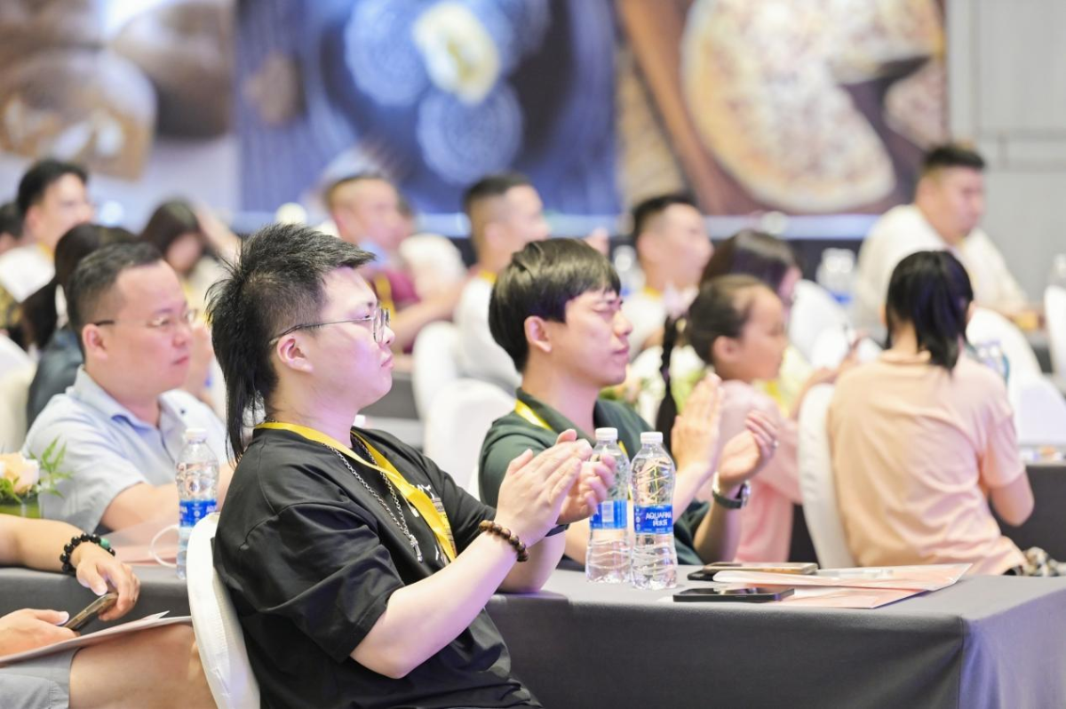 高光時(shí)刻,荃盛營(yíng)銷總監(jiān)楊剛先生介紹了荃盛2022年 “大師系列、燕窩系列、流心系列”等系列爆品禮盒,滿足了高端節(jié)禮、商務(wù)答謝、員工福利等多種節(jié)慶場(chǎng)景。荃盛品牌代言人、技術(shù)總監(jiān)陳剛先生為經(jīng)銷商介紹了“黑松露流心蛋黃酥、黑松露流心奶黃月、荃盛金頂酥(大浙餅)、檸檬奶黃燕窩星球酥”等重磅新品。席間,嘉賓們沉浸在美人、美食、美景中,對(duì)產(chǎn)品口味贊不絕口。